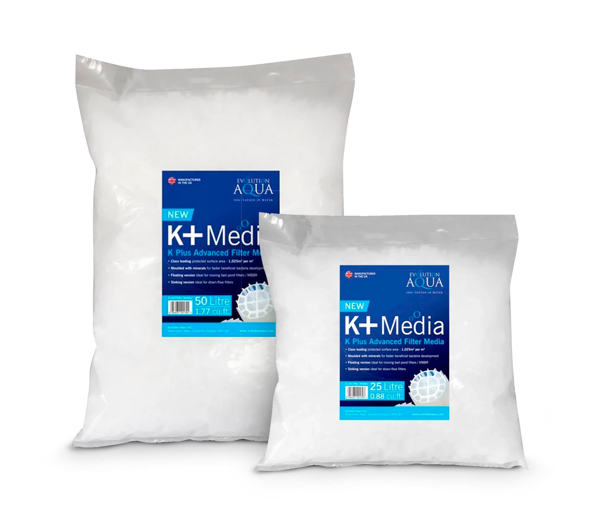 K+ Media is an advanced, engineered plastic filter media designed for biological filtration in moving bed filters. It features a unique, mineral-infused formula that matures faster and offers a class leading surface area of 1,3540 m2 per m3.